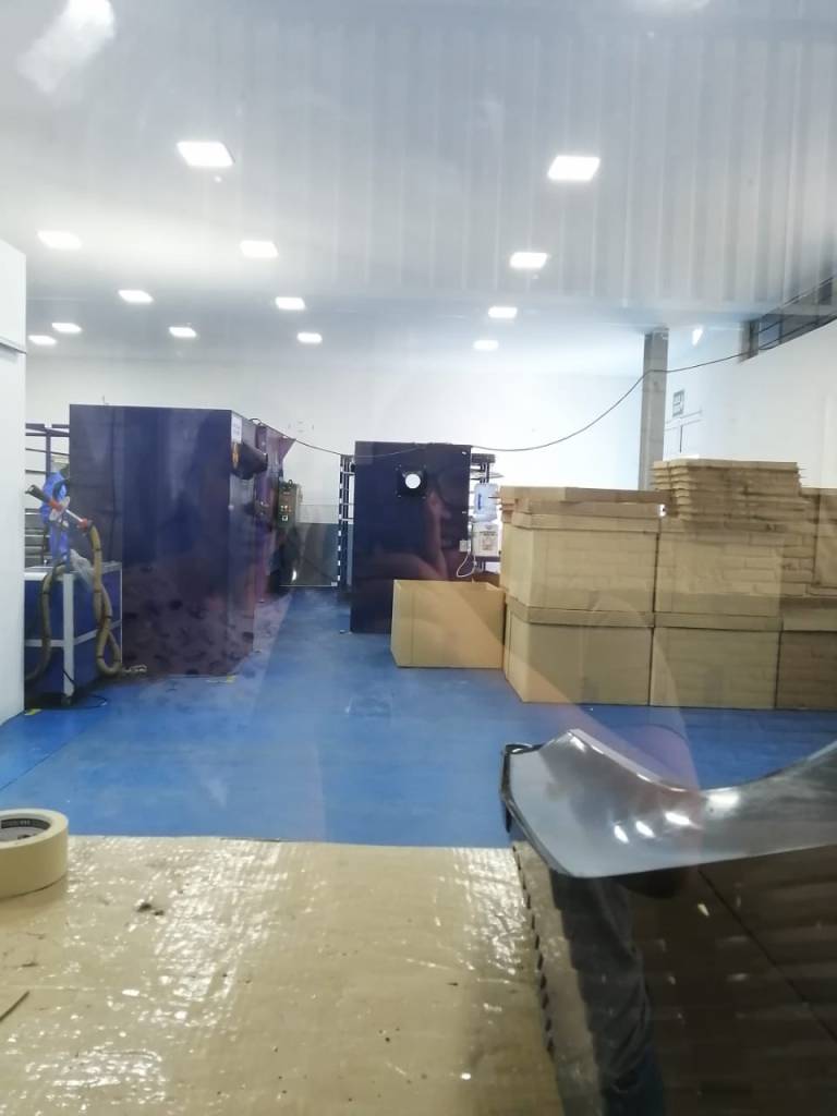 - Comenzamos el recorrido con el primer proceso: Flocking. La señorita Diana … nos explicó el proceso detalladamente. Éste comienza con un material muy pequeño de plástico que da la impresión de terciopelo, el material es introducido en una cámara en donde los trabajadores cubren de pegamento las piezas plásticas utilizadas en los automóviles. Una vez terminado el proceso, se forraban con “Flock” y se llevaban a los hornos, éstos secaban el pegamento para que el Flock no se desprendiera. El desperdicio del Flock se podía reutilizar algunas veces, hasta que dejara de cumplir la calidad deseada por los clientes. Finalmente se empaquetaban las piezas dentro de bolsas plásticas selladas. Cabe recalcar que los trabajadores dentro de la cámara de Flock tienen más equipo de protección, principalmente en boca y nariz para evitar cualquier problema de salud.
